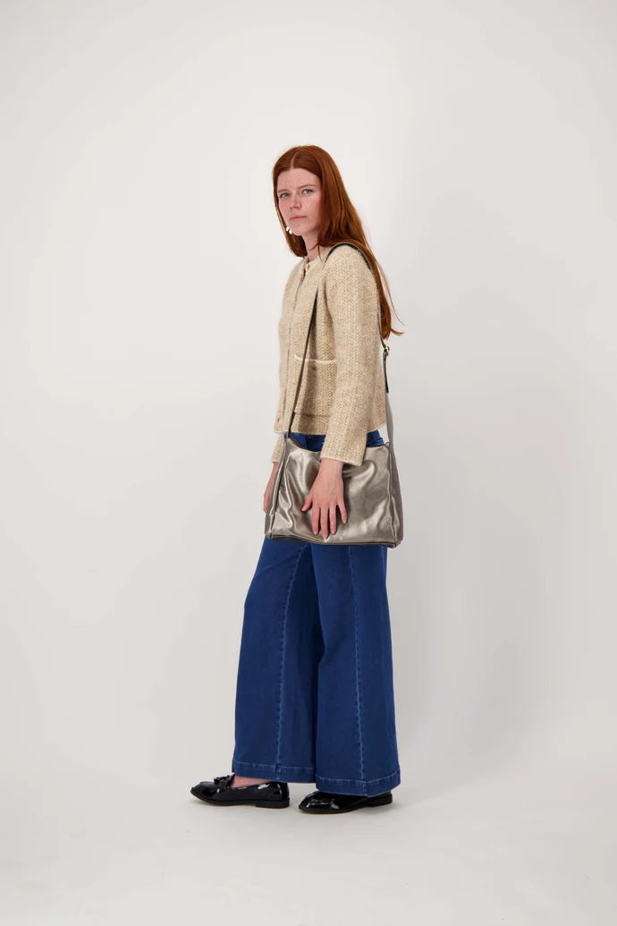 Zusss | Schoudertas met brede band metalic zilver