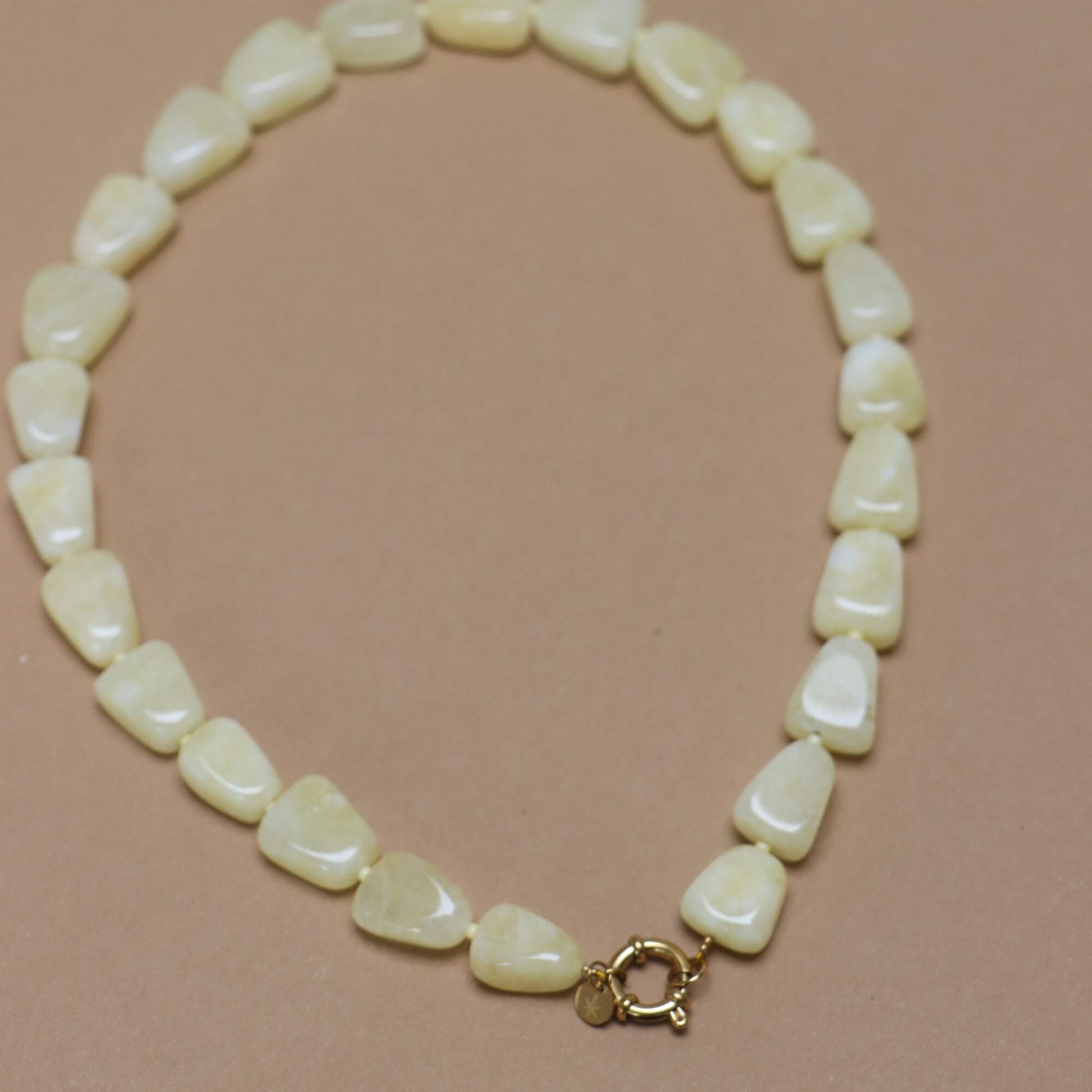 - Materiaal: stainless steel, 18K gold plated, jade & glas