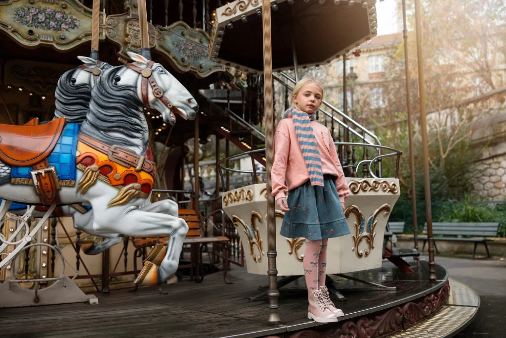 Mit Schleifen verziert. Diese Strumpfhose in Pfirsichparfait besticht durch ein durchgehendes Intarsien-Schleifenmuster in Türkis. Dank des weichen und dehnbaren Baumwollmixes ist sie perfekt für kühle Tage geeignet.