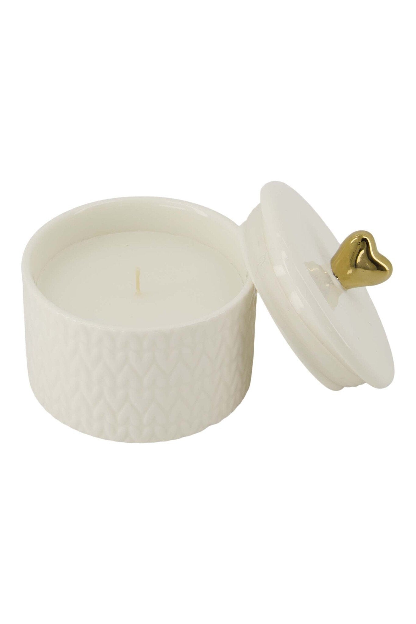 Zusss | Duftkerze aus Keramik mit Deckel, Herzform, klein, weiß/gold