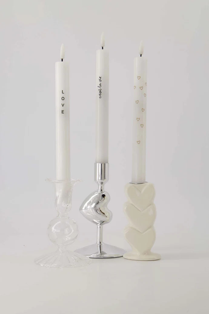 Zusss | Keramik-Kerzenständer mit Herzen, weiß